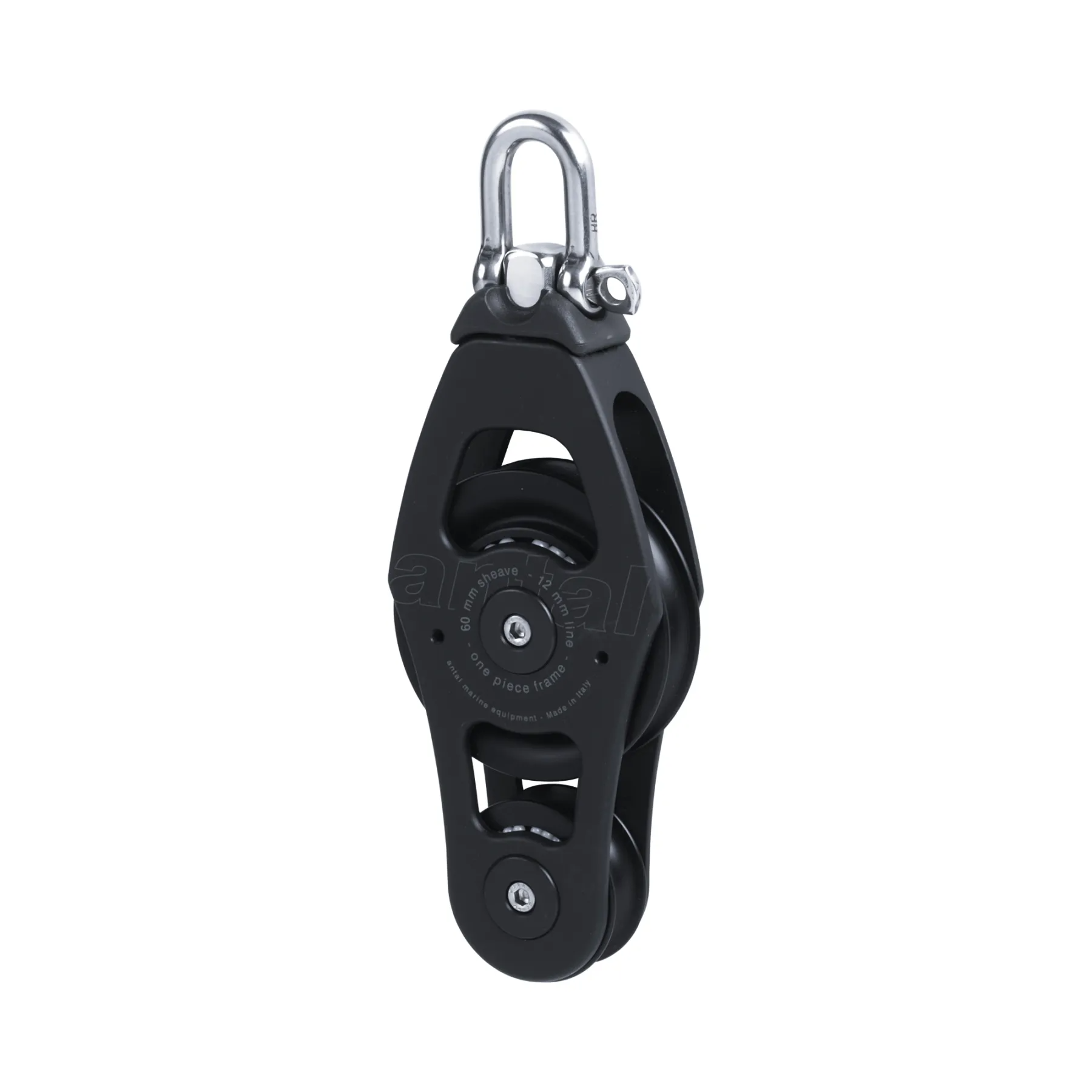 The Antal OPF 60 Fiddle Block (Model 00607) is engineered to provide smooth and efficient line handling for sailing applications where durability, low friction, and reliability are paramount. It features a 60 mm composite fibre sheave running on a stainless steel hub supported by Delrin bearings, ensuring ultra-smooth rotation and minimal drag without lubrication. The one-piece CNC-machined aluminium frame is hard black anodised and Teflon-coated to deliver exceptional corrosion resistance and strength while maintaining a sleek and modern appearance.