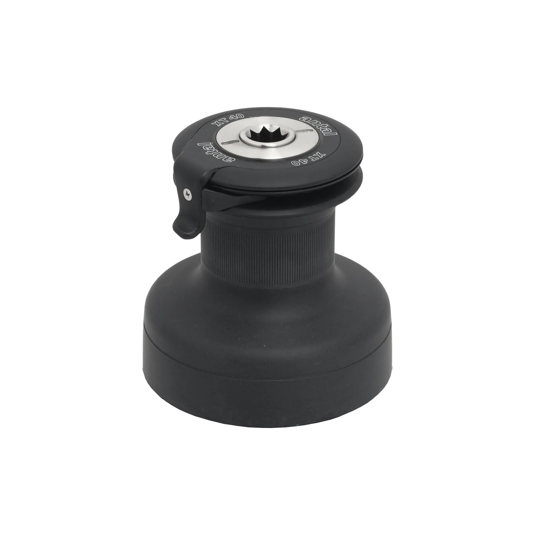 The Antal XT40 Race Winch (Model XT40R) is a high-performance two-speed self-tailing winch designed for competitive sailors seeking speed, power, and reliability. The winch features a hard anodised aluminium drum with specialized knurling for excellent grip and a robust bronze gear train for durability.